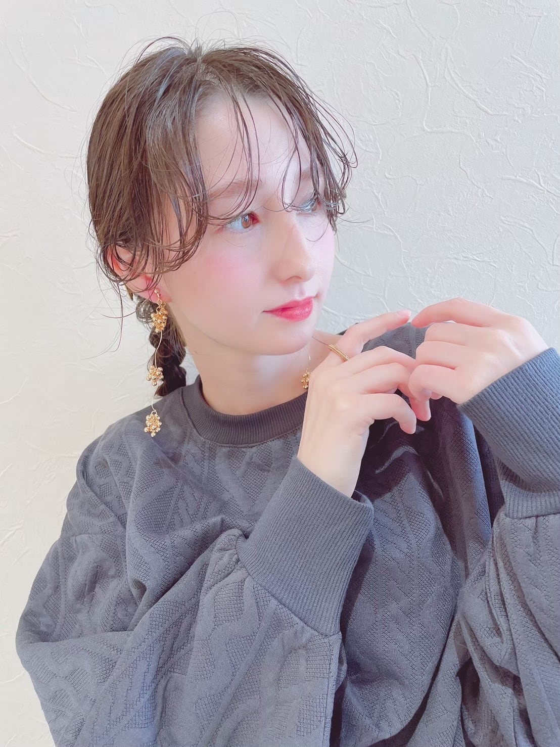 透明感あふれる"glass heart" しずくのようなハートパーツが 光を美しく反射して角度によって上品に輝きが 甘くなりすぎないフォルムと繊細なデザインで 普段使いにも自然になじむハートアイテム 揺れるたびにさりげなくきらめき、 顔まわりを明るく、華やかに♡