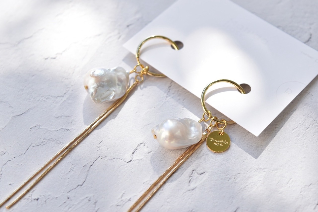 希少な大粒のオイスターバロックパールを厳選し、贅沢に使用した新作。