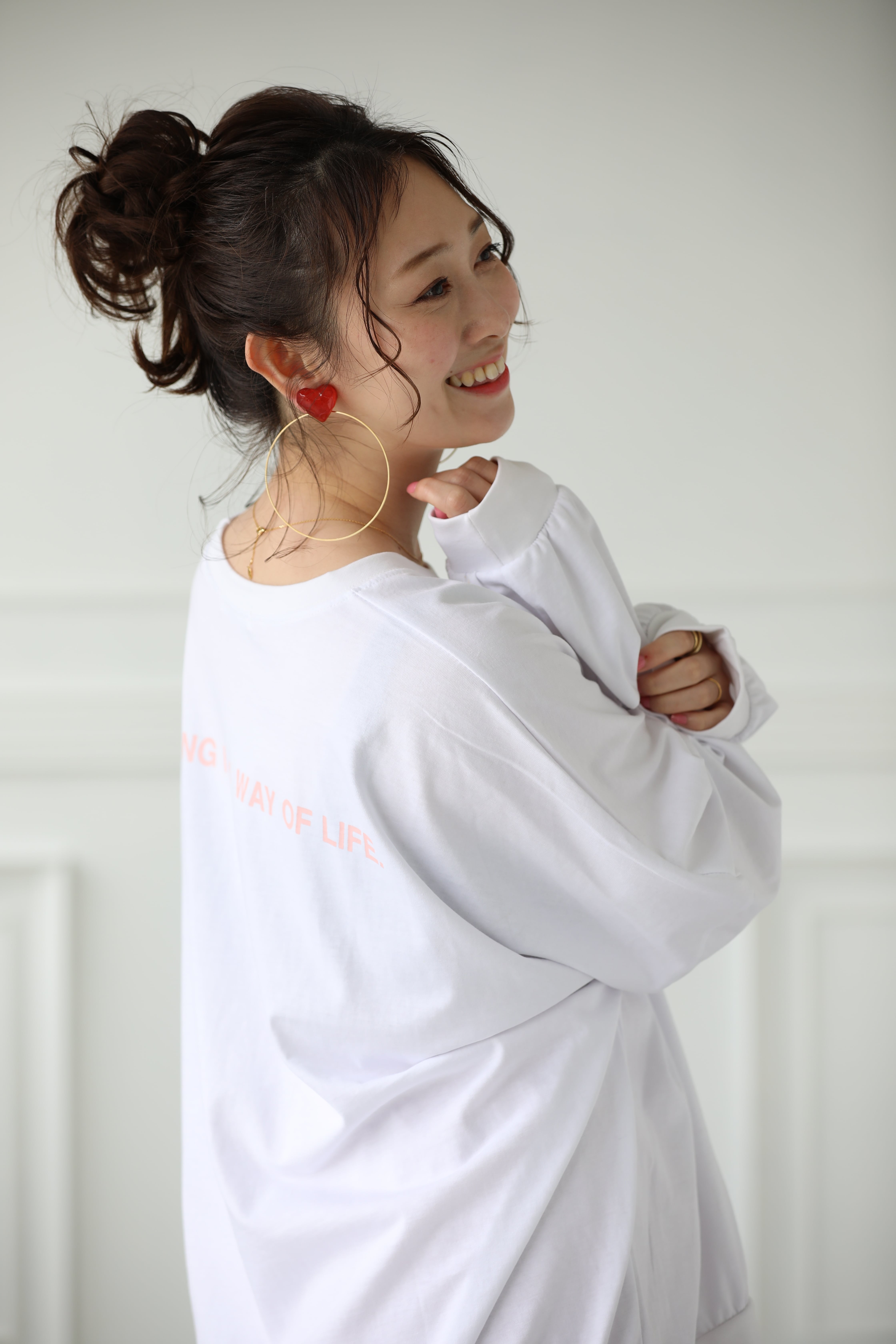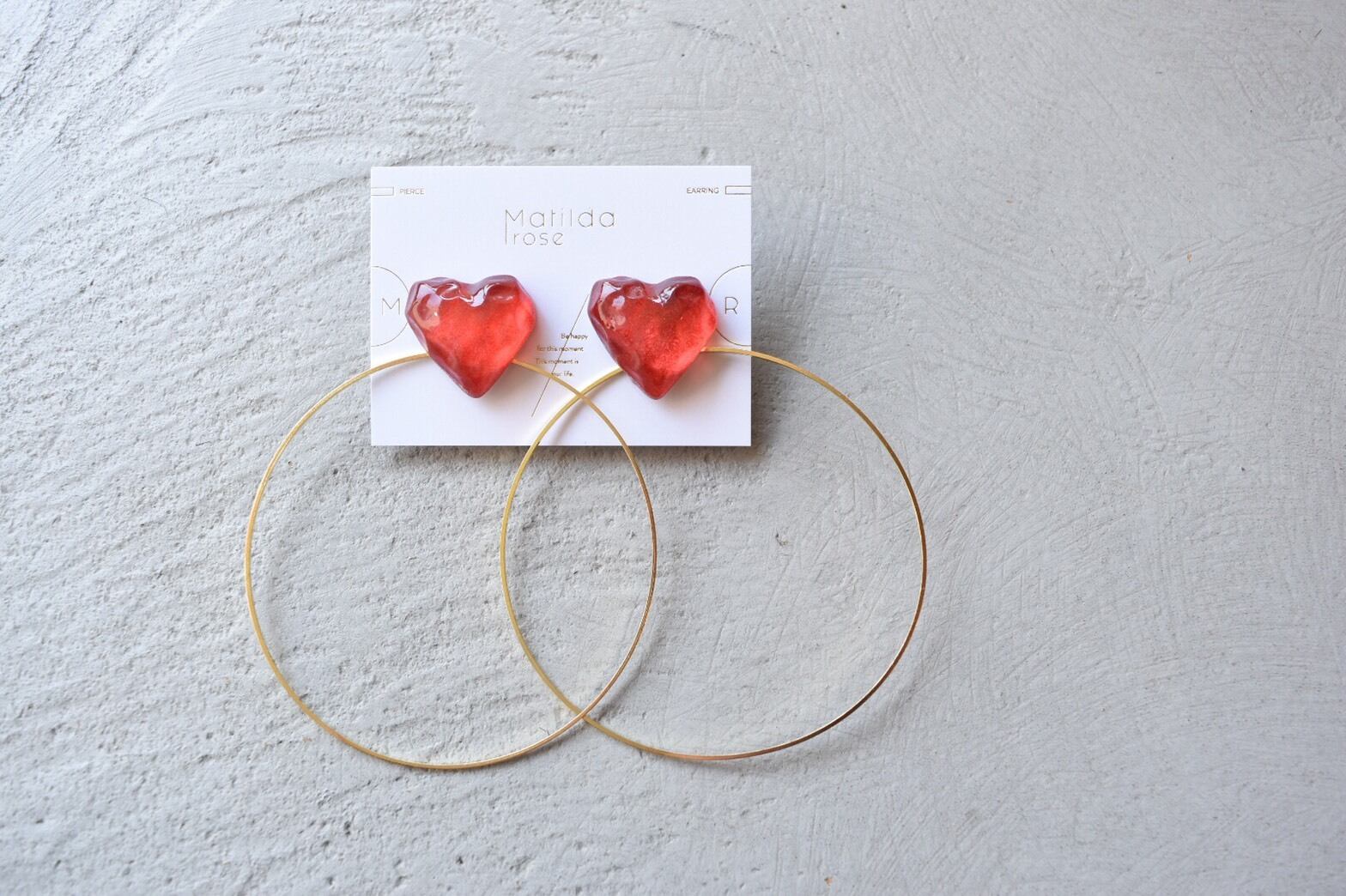 フープは8cmのビッグサイズ。ピアスはキャッチを変えて、イヤリングはひっかけるだけの2way仕様となります。