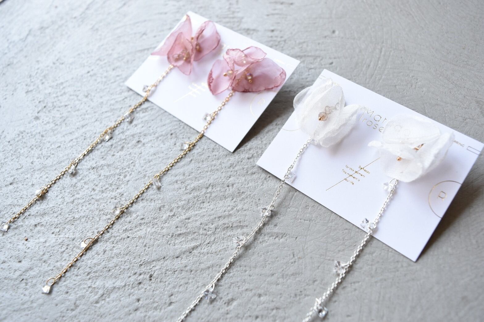 ※ 布製のパーツですのでシフォンフラワーに折り目がはいっている場合もございます。
